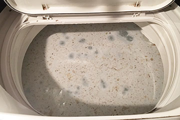 洗濯槽につく黒い汚れはカビ。洗剤の残りカスが洗濯槽につくことでそこにカビが生えるものです。