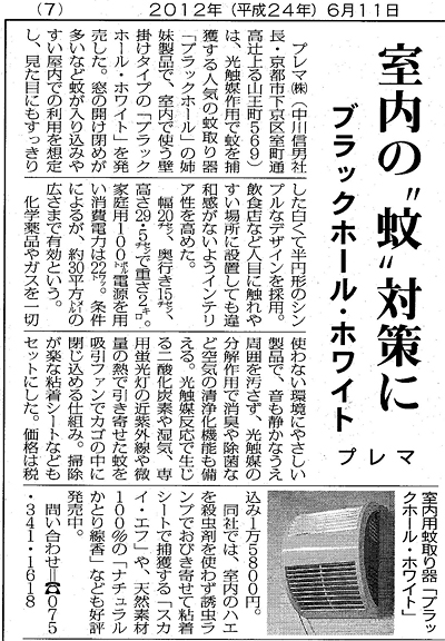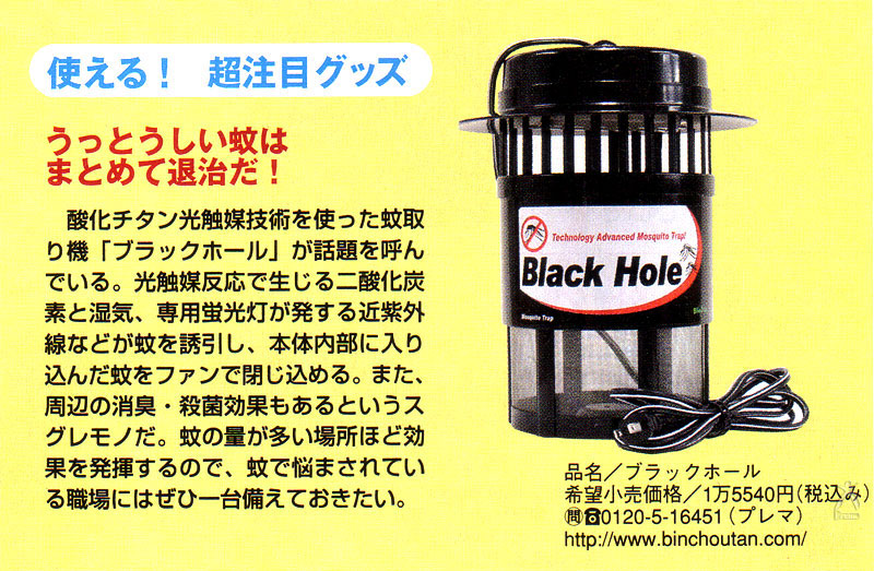 酸化チタン光触媒技術蚊取り器 ブラックホール 各誌記事一覧