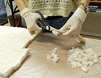 1. まずは検体のホットカーペットカバーを細かく切ります。