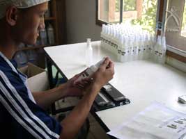 ひとつひとつ丁寧にラベルを貼り、検品をおこないます。