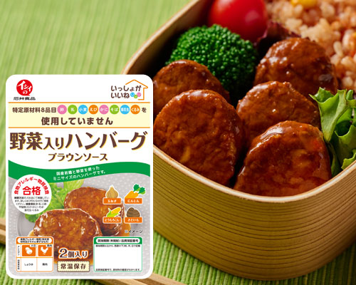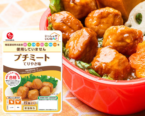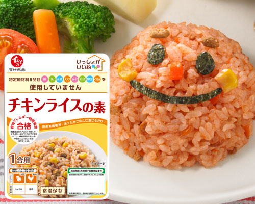 イシイの「いっしょがいいね」シリーズは、食物アレルギーに配慮し、特定原材料8品目(えび、かに、くるみ、小麦、そば、卵、乳、落花生(ピーナッツ))は使われていません。「子どもの笑顔を守る」という石井食品の理念を形にしたシリーズです。