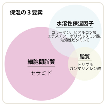 肌の内側に水分を保つうえで必要なもの、それが「保湿成分」です。