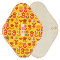 肌面には、オーガニック・コットンのネル生地を使用しています。中には、吸収帯として、無漂白のパイル(タオル生地)を1枚縫い込んでありますので、軽い日やライナーとしてお使いください。コンチネンスケア(軽失禁)にもご使用いただけます。