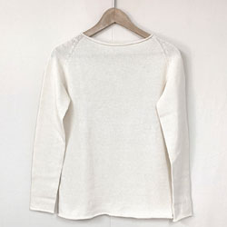 無縫製の場合、一般的には接着しやすい化学繊維が使われることが多いのですが、ナチュラルスタイルではオーガニックコットンを使い、ホールガーメントで仕立て上げています。