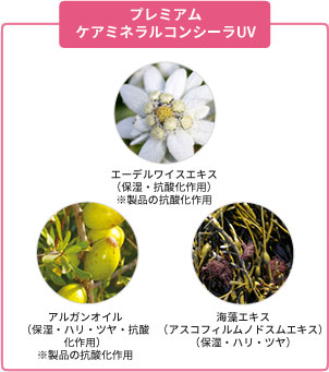 ■全成分:オリーブ果実油・アボカド油・ミツロウ・キャンデリラロウ・キャンデリラロウエキス・ホホバ種子油・ツバキ種子油・ザクロ種子油・バオバブ種子油・アルガニアスピノサ核油※5・ヤシ油・シロキクラゲ多糖体・アロエベラ葉エキス・ビワ葉エキス・ヨモギ葉エキス・クマザサ葉エキ ス・ドクダミエキス・水・エタノール・(+/?)ステアリン酸・ステアリン酸Mg・マイカ・シリカ・酸化チタン・酸化鉄・アルミナ