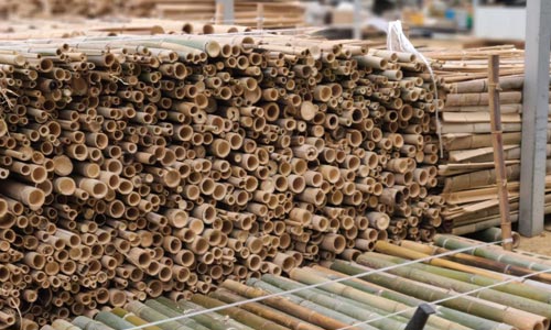 放置竹林から竹を切り出し、約3ヶ月ハウス内で乾燥させる
